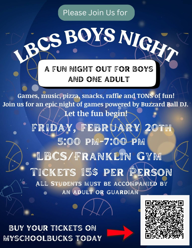 A fun night out for LBCS boys and an adult. Purchase tickets using this link